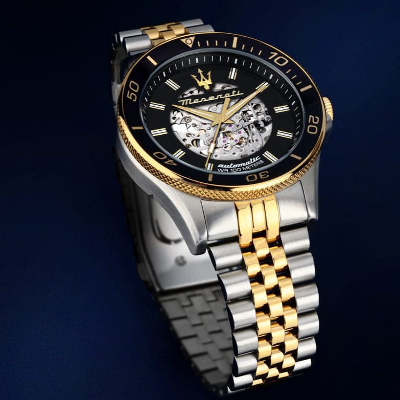 Maserati SFIDA Automatic Skeleton Black Dial Two Tone Steel Strap Watch For Men - R8823140010
