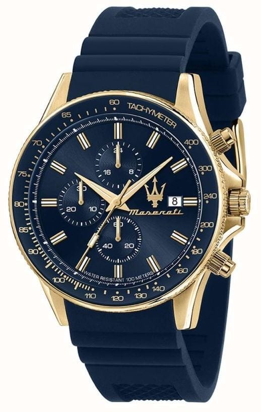 Maserati SFIDA Chronograph Blue Dial Blue Rubber Strap Watch For Men - R8871640004