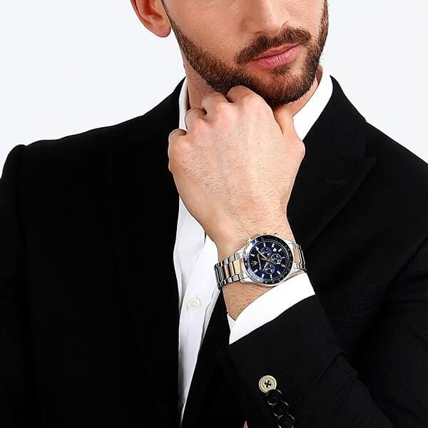 Elegant stainless steel watch is a great proposition for every man. The envelope and bracelet are made of high quality stainless steel in silver and pink -colored colors.