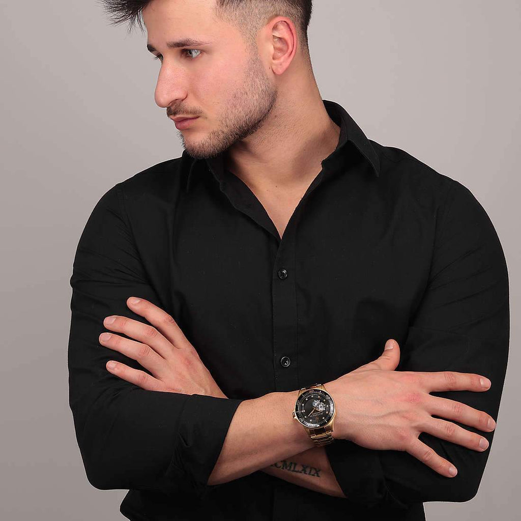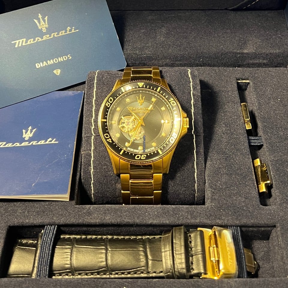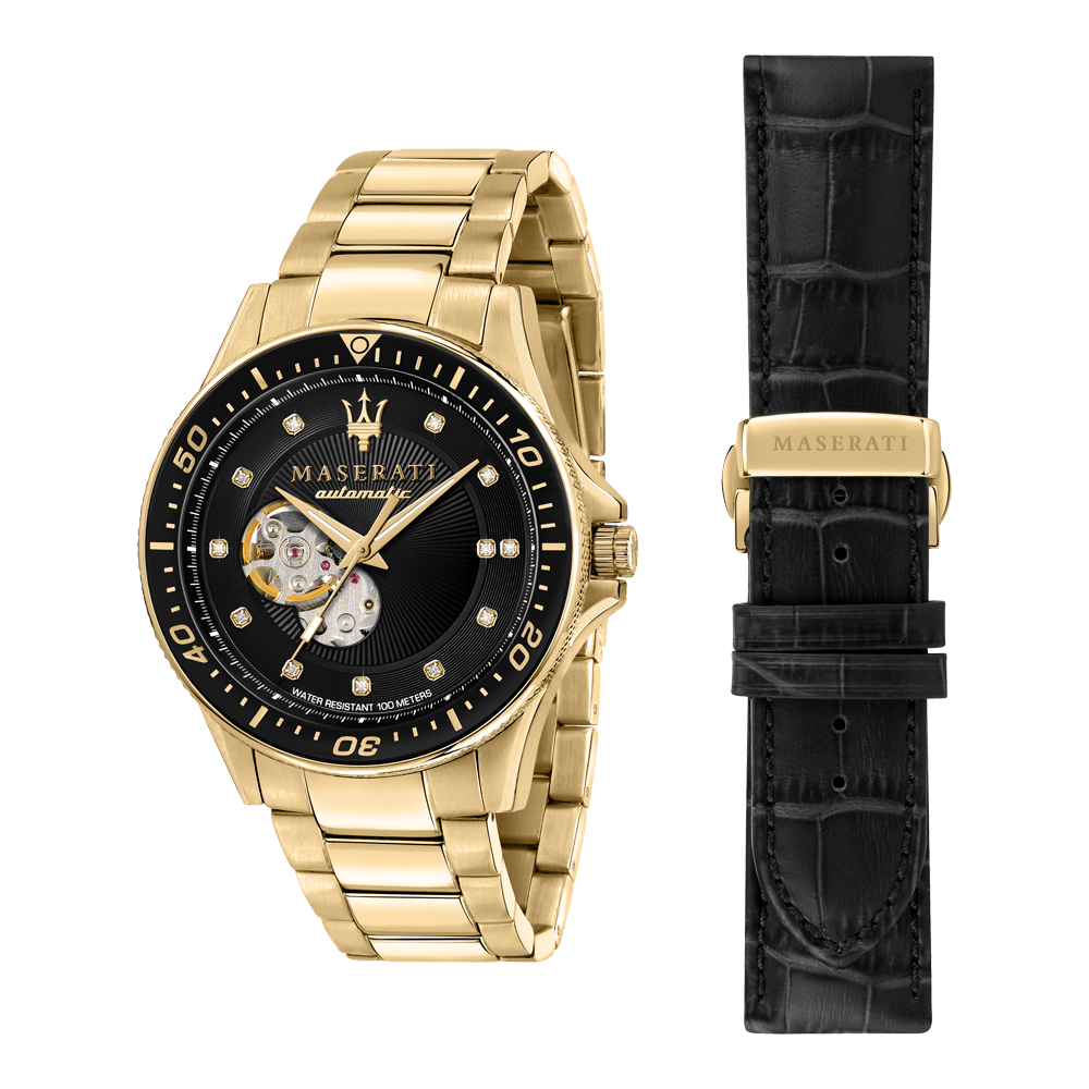 Maserati SFIDA Black Dial Yellow Gold Toned Stainless Steel Watch For Men - R8823140003