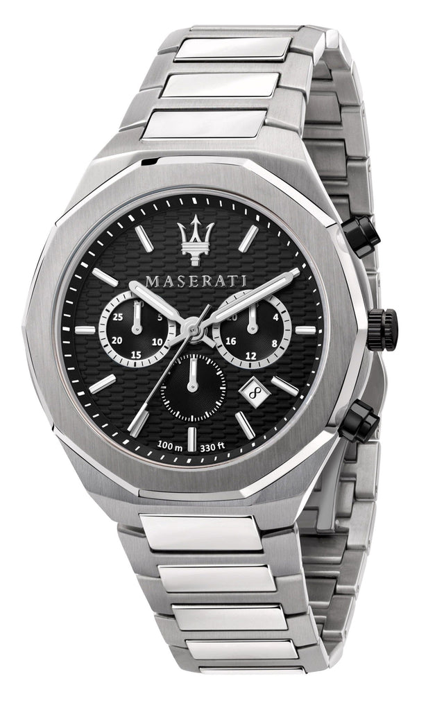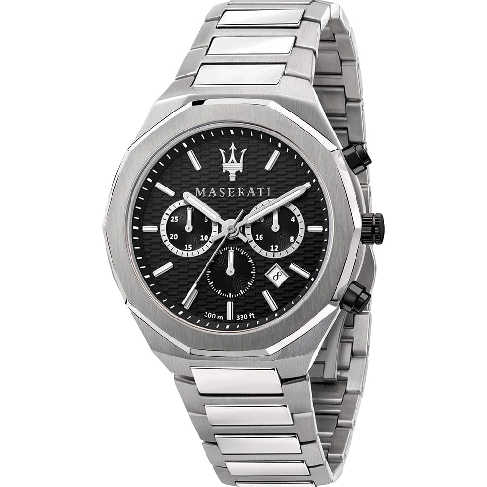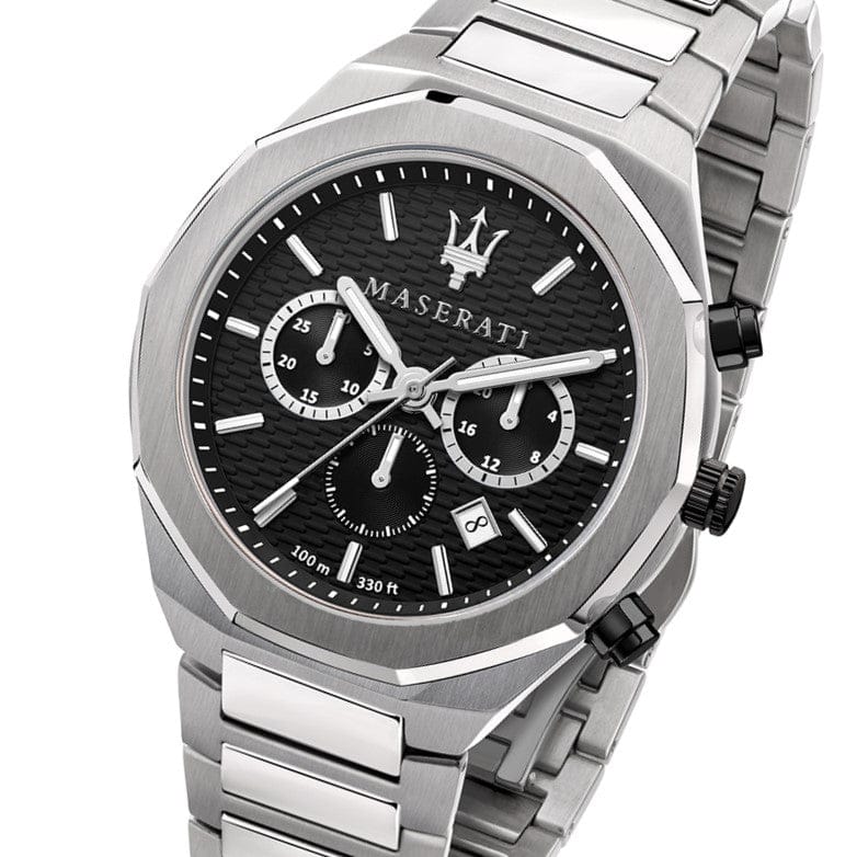 Maserati Stile Chronograph Black Dial Silver Steel Strap Watch For Men - R8873642004