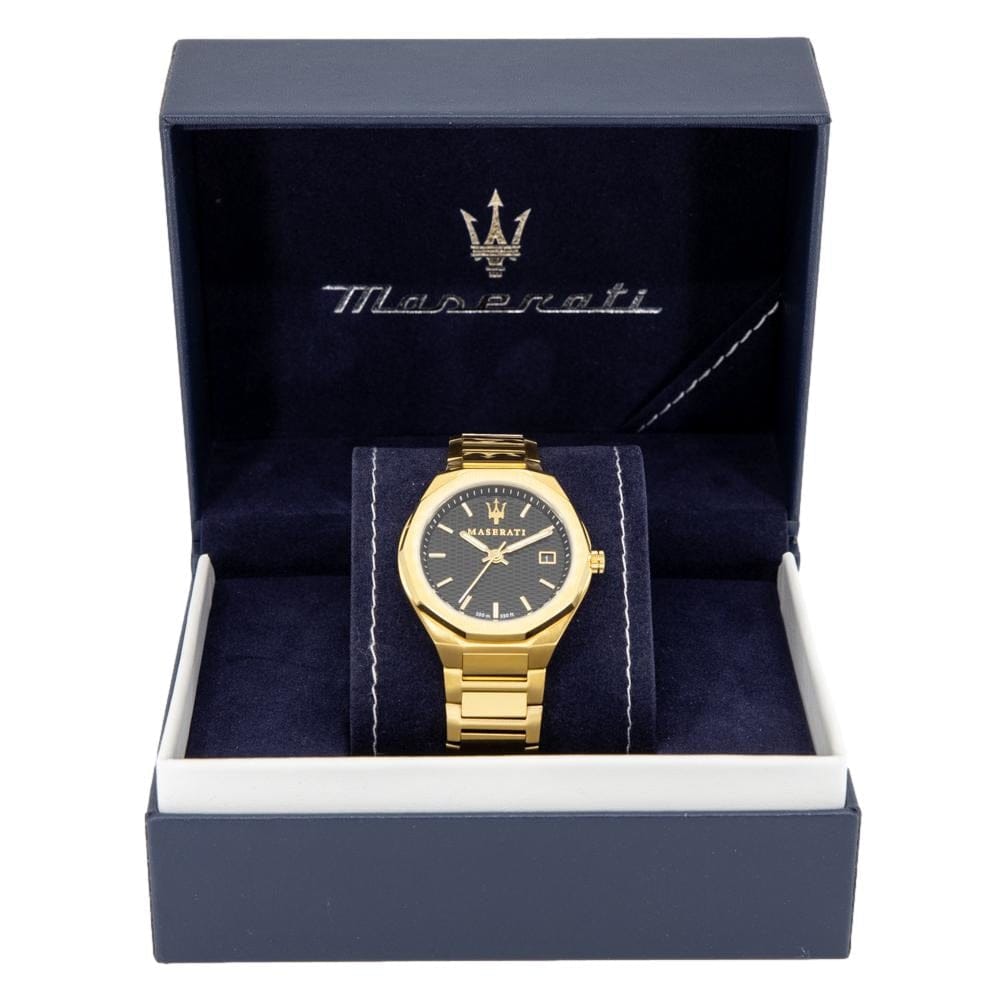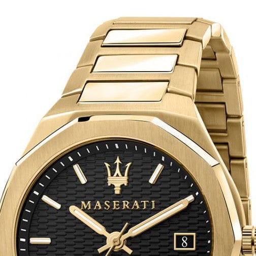 Maserati Stile Black Dial Gold Steel Strap Watch For Men - R8853142004