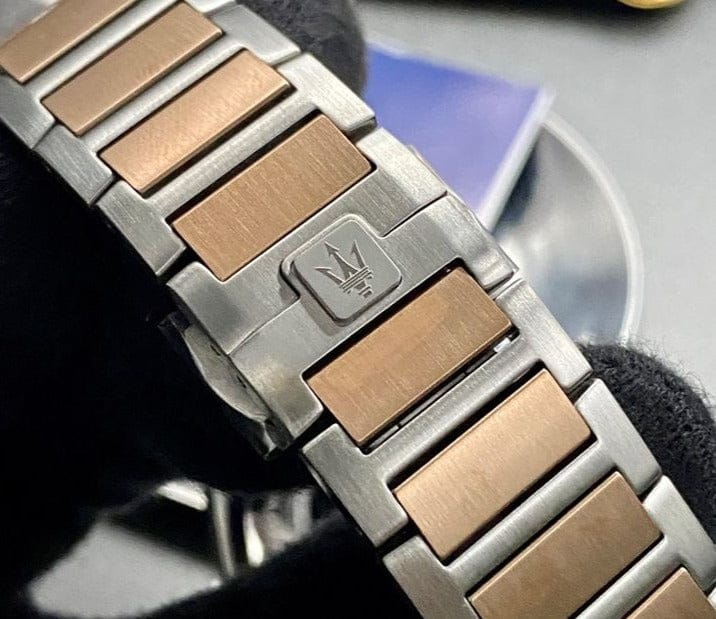 Maserati Stile Chronograph Blue Dial Rose Gold Two Tone Strap Watch For Men - R8873642002