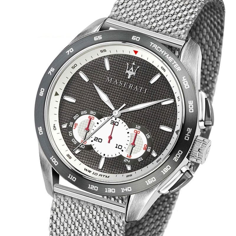 Maserati Traguardo Chronograph Black Dial Silver Mesh Bracelet Watch For Men - R8873612008