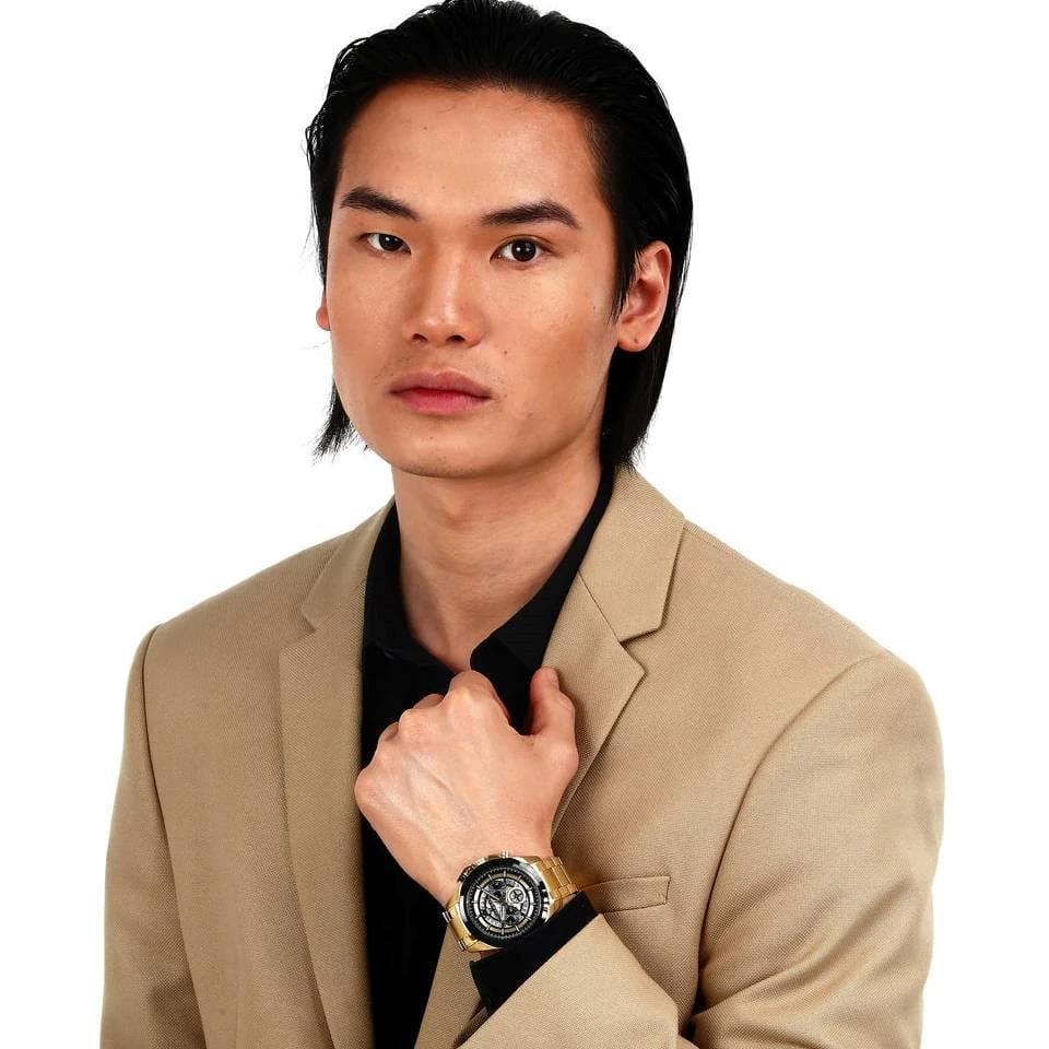 Experience the ultimate combination of luxury and style with the Maserati Traguardo Skeleton Black Dial Gold Steel Strap Watch for Men. This exquisite timepiece features a skeleton black dial, highlighting the intricate inner workings of the watch. The gold steel strap adds a touch of sophistication, making it the perfect accessory for any occasion. Elevate your look and make a statement with this stunning Maserati watch.