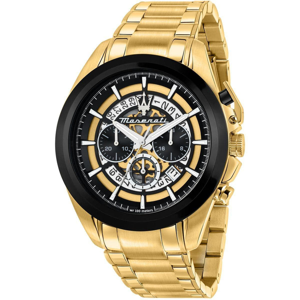 Maserati Traguardo Skeleton Black Dial Gold Steel Strap Watch For Men - R8873612058