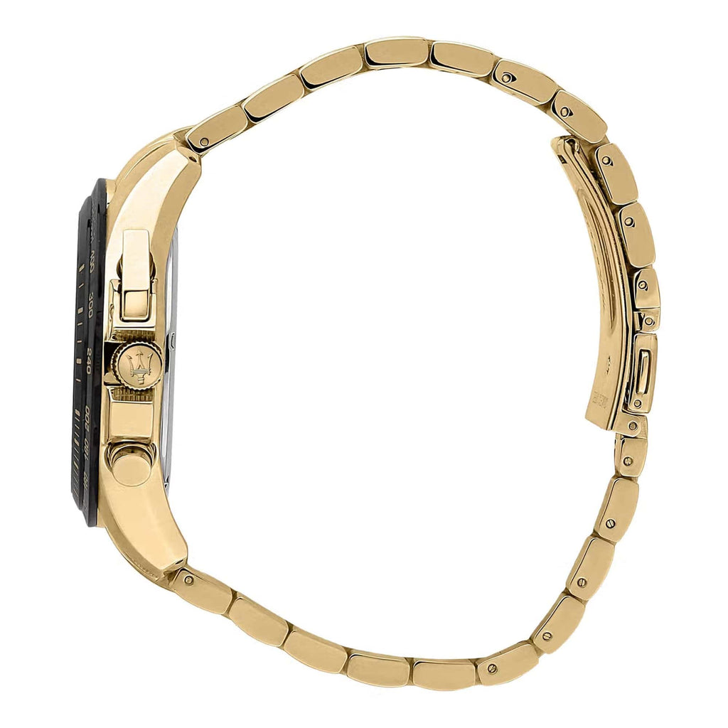 Maserati Traguardo Chronograph Black Dial Gold Steel Strap Watch For Men - R8873612041