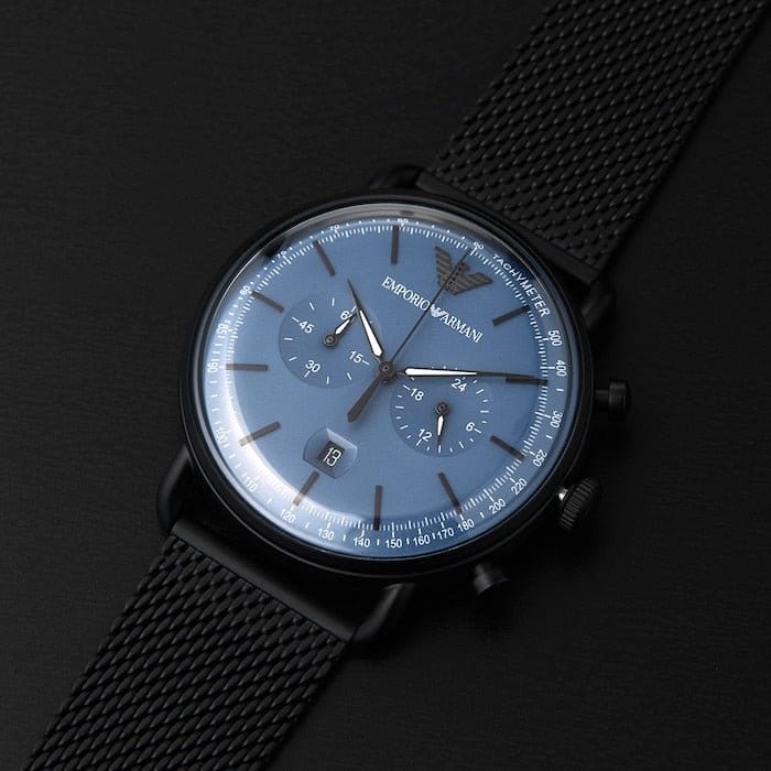 Emporio Armani Aviator Chronograph Blue Dial Black Mesh Bracelet Watch For Men - AR11201