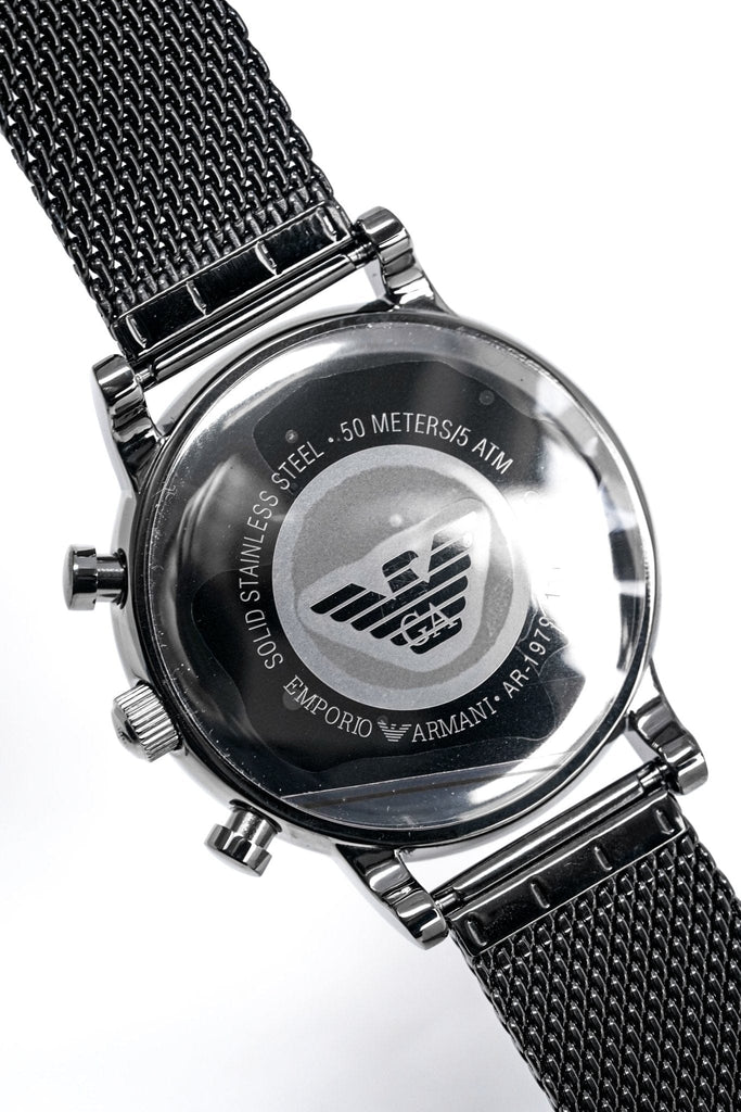 Emporio Armani Chronograph Blue Dial Gun Metallic Mesh Bracelet Watch For Men - AR1979