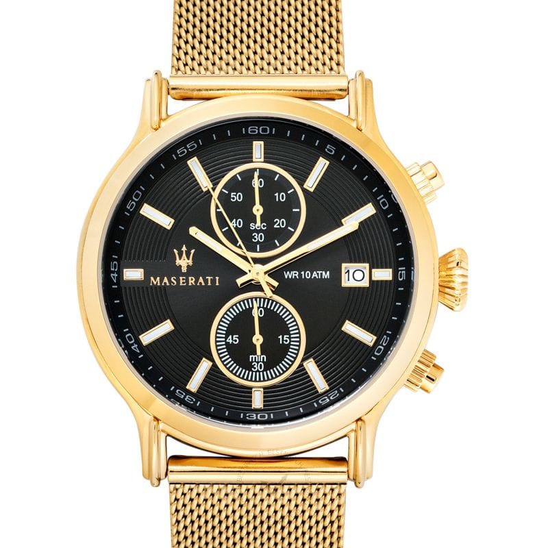 Maserati Epoca 42mm Black Dial Gold Mesh Bracelet Watch For Men - R8873618007