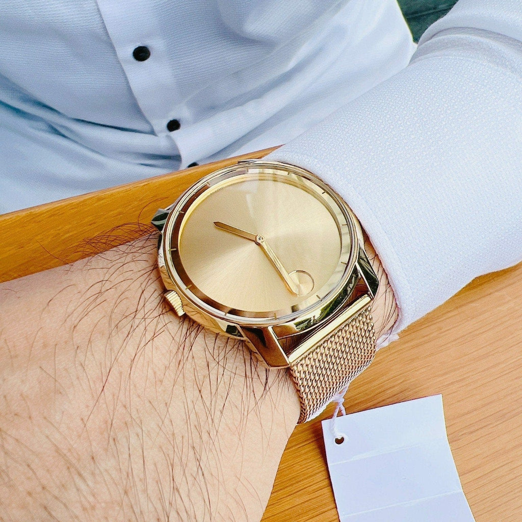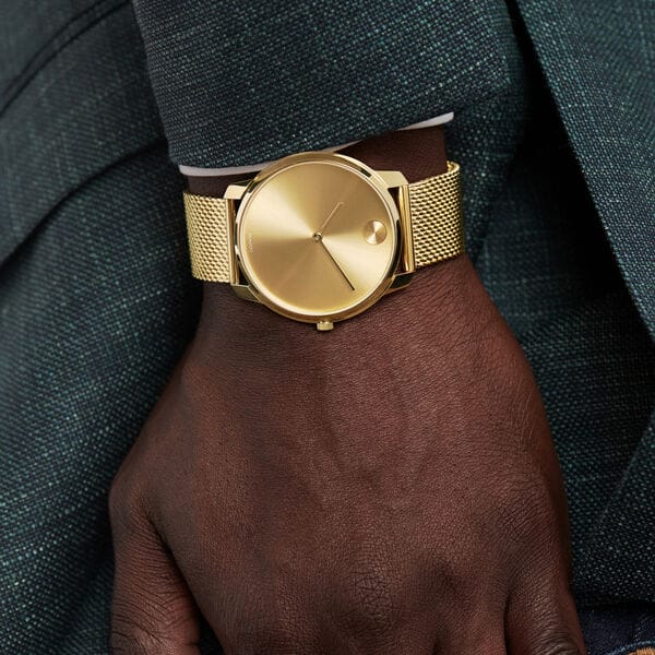 Movado Bold Gold Dial Gold Mesh Bracelet Watch For Men - 3600373