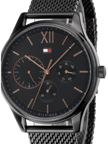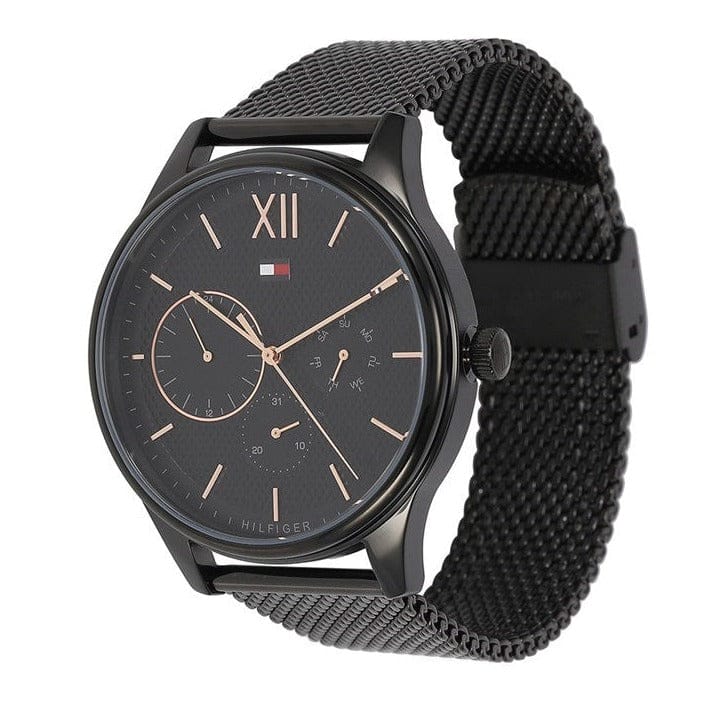 Tommy Hilfiger Damon Quartz Black Dial Black Mesh Bracelet Watch for Men - 1791420