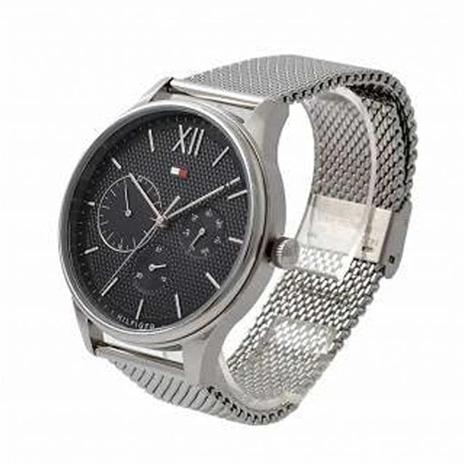 Tommy Hilfiger Damon Quartz Chronograph Black Dial Silver Mesh Bracelet Watch for Men - 1791415
