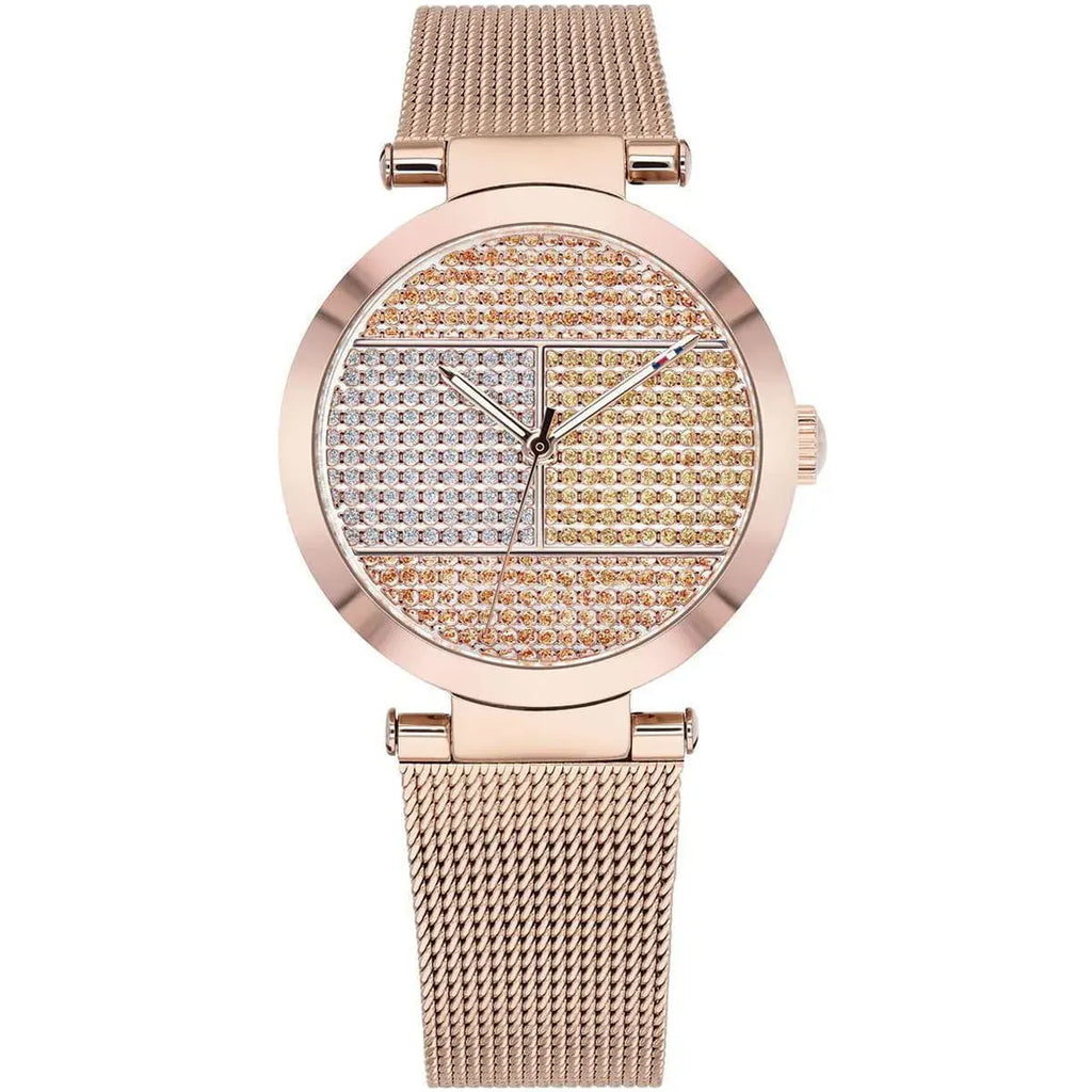 Tommy Hilfiger Lynn Crystals Rose Gold Dial Rose Gold Mesh Strap Watch For Women - 1781868