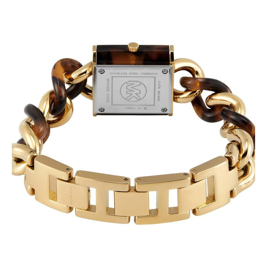 This Michael Kors watch features a stunning tortoise gold tone dial, adding sophistication and style to any outfit. Expertly crafted with a delicate balance of design and function, this timepiece is sure to impress. Perfect for the modern woman, this watch makes a bold statement with its luxurious design.
