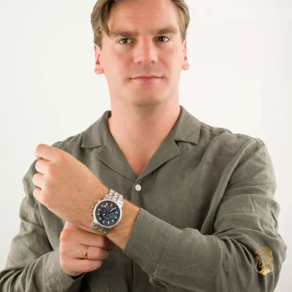 Introducing this Men's 43mm Hutton watch. Featuring a multi-link bracelet with a subtle navy logo dial, this Silver-tone Chronograph watch is bound to be a timeless classic. This collection of models, all fitted with self-winding calibres, is at the same time totally contemporary and perfectly timeless.