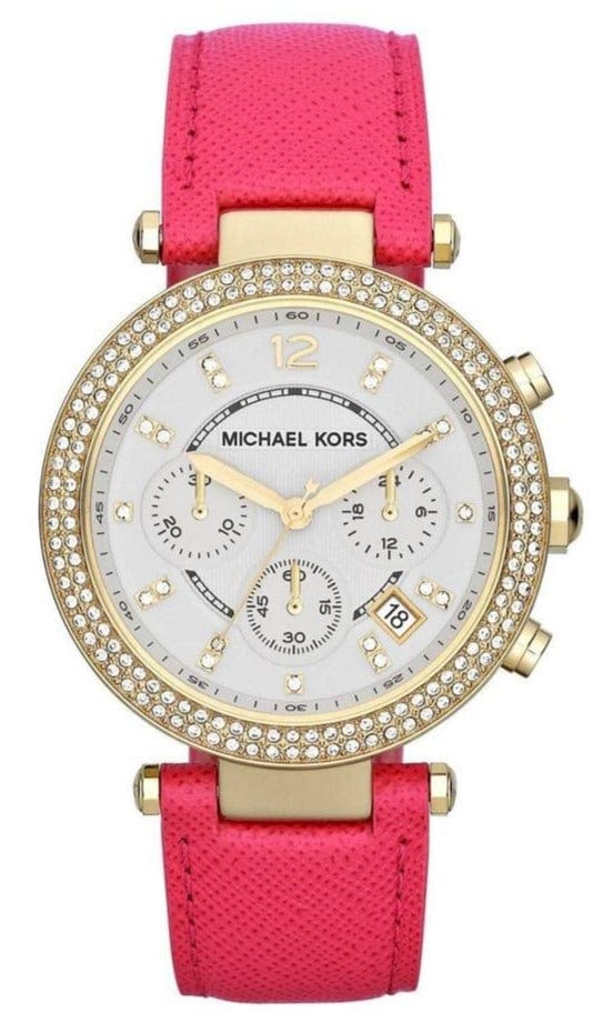 Michael Kors Parker Chronograph White Dial Pink Leather Strap Watch for Women - MK2297