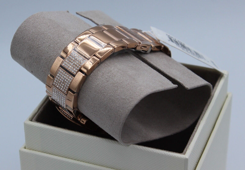 This rose gold-tone stainless steel watch is the perfect piece for everyday-wear. Besides, it is completed with a fold-over push button clasp with safety clasp to ensure a secure fit on the wrist.
