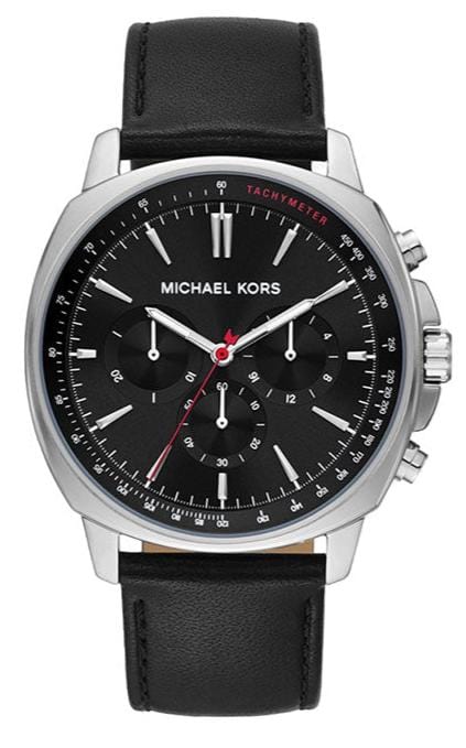 Michael Kors Sullivan Chronograph Black Dial Black Leather Strap Watch For Men - MK8997