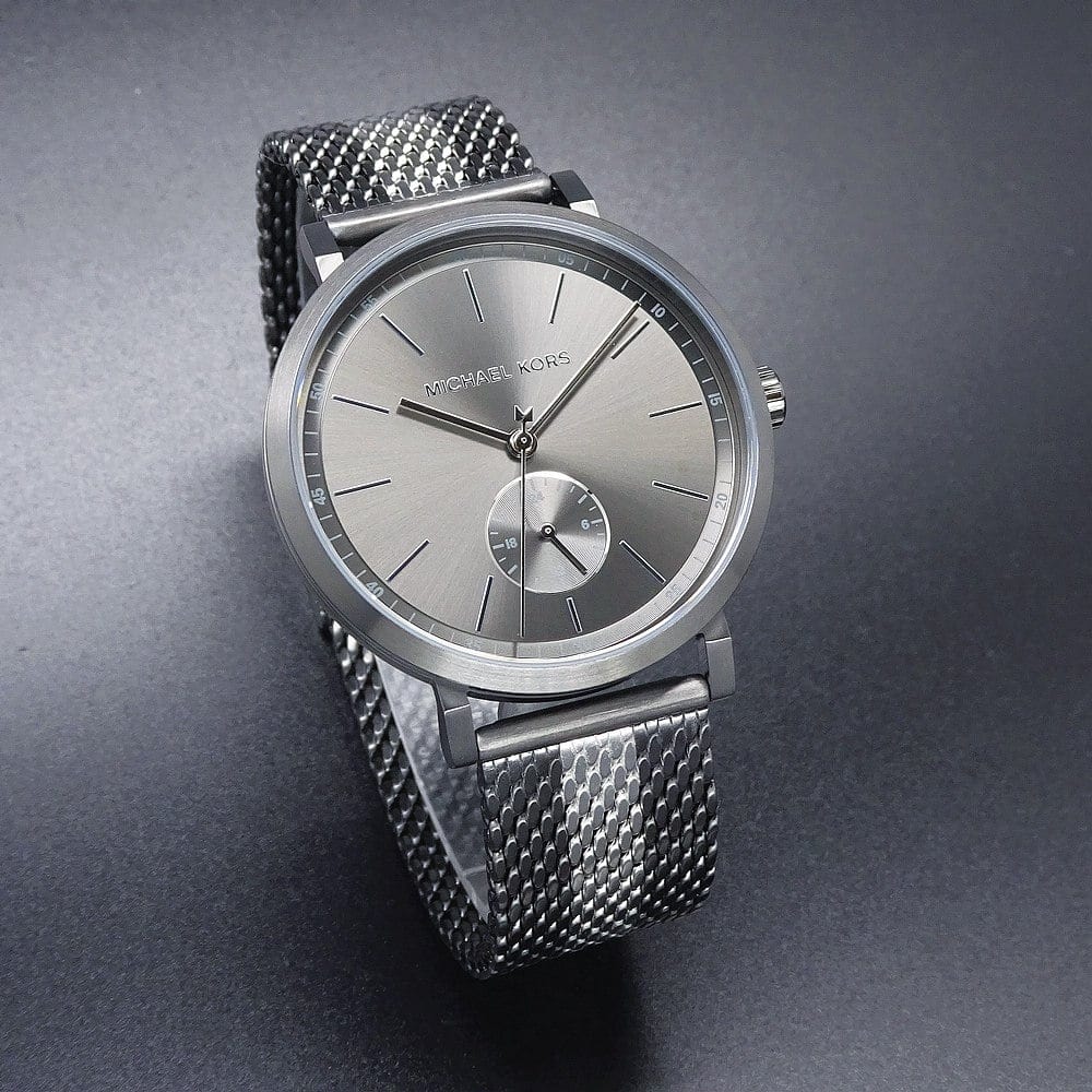 Introducing the Michael Kors Irving watch - the perfect balance of style and functionality. This elegant timepiece features a grey dial with two tone mesh strap, making it versatile for any occasion. Stay on schedule and elevate your look with this stunning watch.