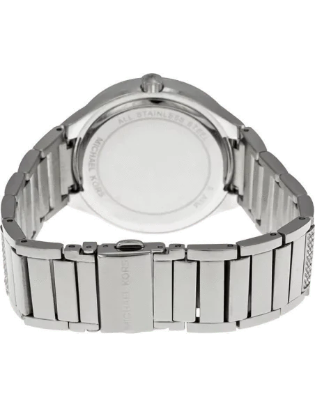 Band width: 20 mm. Deployment clasp. Water resistant at 50 meters / 165 feet. Functions: hour, minute, second. Dress watch style. Michael Kors Kerry Crystal Pave Stainless Steel Ladies Watch MK3359.