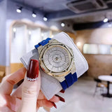 Michael Kors Lennox Three Hand White Dial Blue Silicone Strap Watch For Women - MK7333