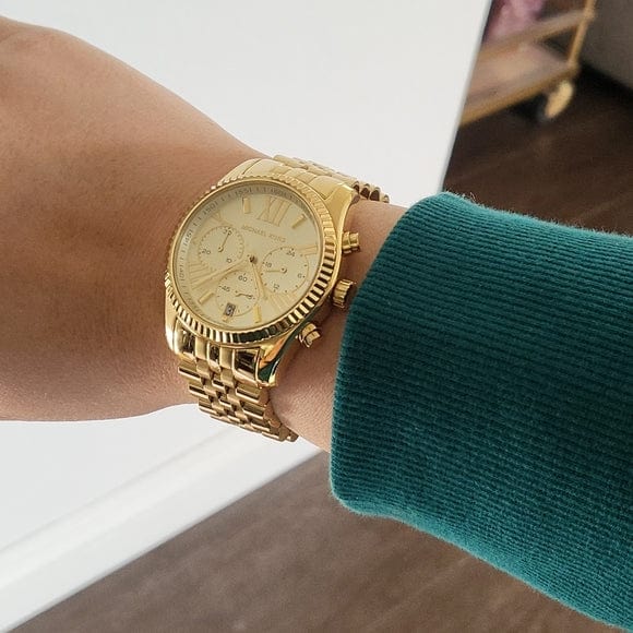 Elevate your style with the Michael Kors Lexington Gold Dial Watch for Women. Its sleek design features a gold dial and gold steel strap, adding a touch of elegance to any outfit. Stay on time and in vogue with this stunning timepiece.