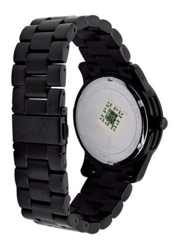 This elegant Michael Kors Runway watch for women features a black dial and black steel strap, exuding sophistication. With its sleek design and reliable Japanese quartz movement, this timepiece is perfect for any occasion. The black-on-black color scheme adds a touch of sleekness and versatility to any outfit.