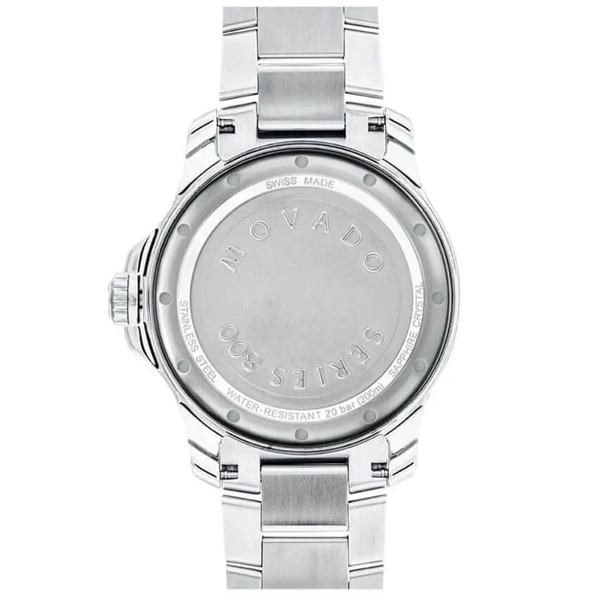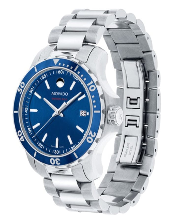 The Performance Steel link bracelet utilizes a secure deployment clasp to ensure your stylish watch always fits perfectly. This iconic wristwatch for men includes all the quality components you expect from Movado. The sapphire crystal glass is shatter- and scratch-resistant and the Swiss quartz movement ensures the watch is accurate, reliable and requires minimal manual maintenance. The Series 800 watch is water resistant up to 200 meters.