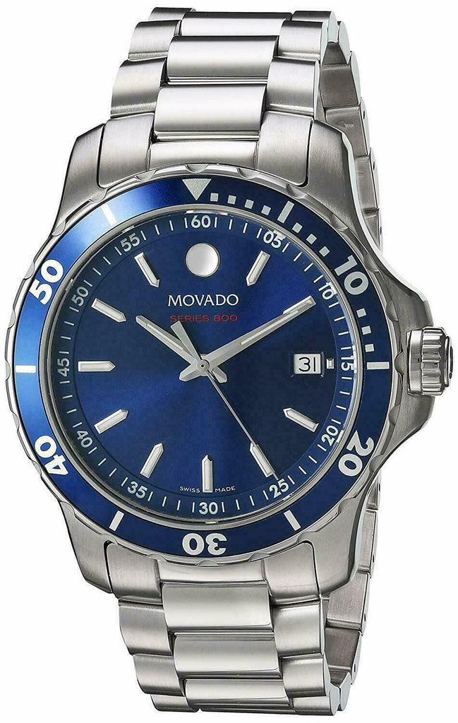 Movado Series 800 Blue Dial Silver Steel Strap Watch For Men - 2600137
