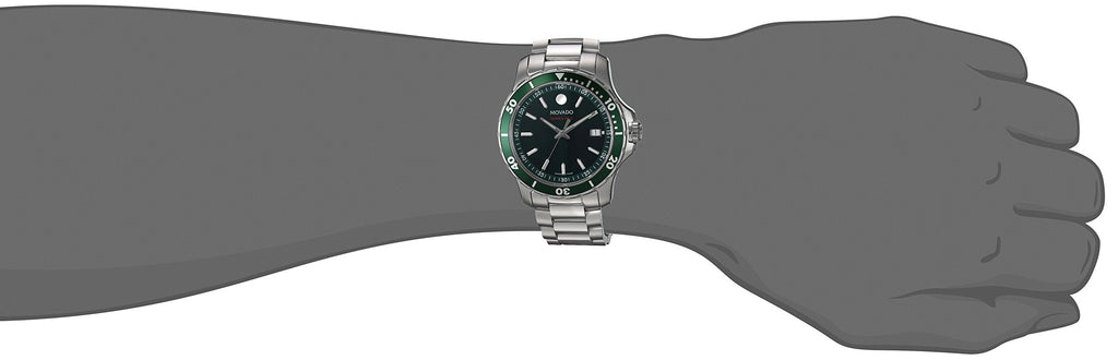 Movado Series 800 Mens Silver Stainless Steel-Aluminum Case Quartz Green Dial Silver Stainless Steel Bracelet Watch