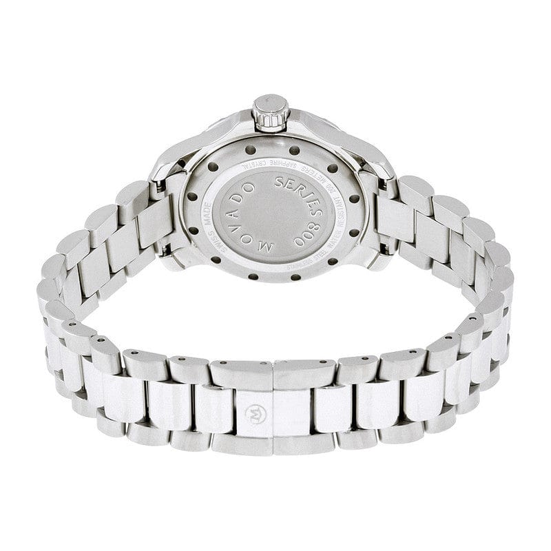Women's Series 800 watch, 29 mm Performance Steel case with 46-diamond bezel and screw-down crown, round white mother-of-pearl 3-hand dial with 10 diamond markers, silver-toned signature dot and hands, printed minute index, and date display, (0.334 t.c.w. diamonds), Performance Steel link bracelet with deployment clasp