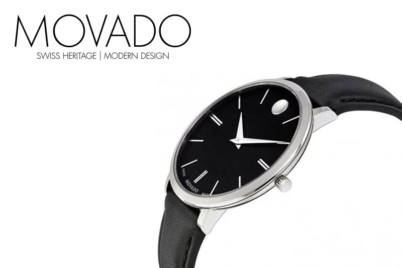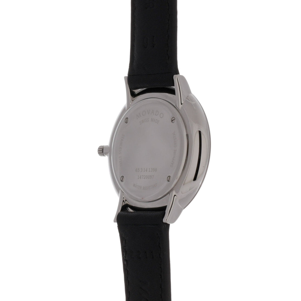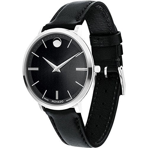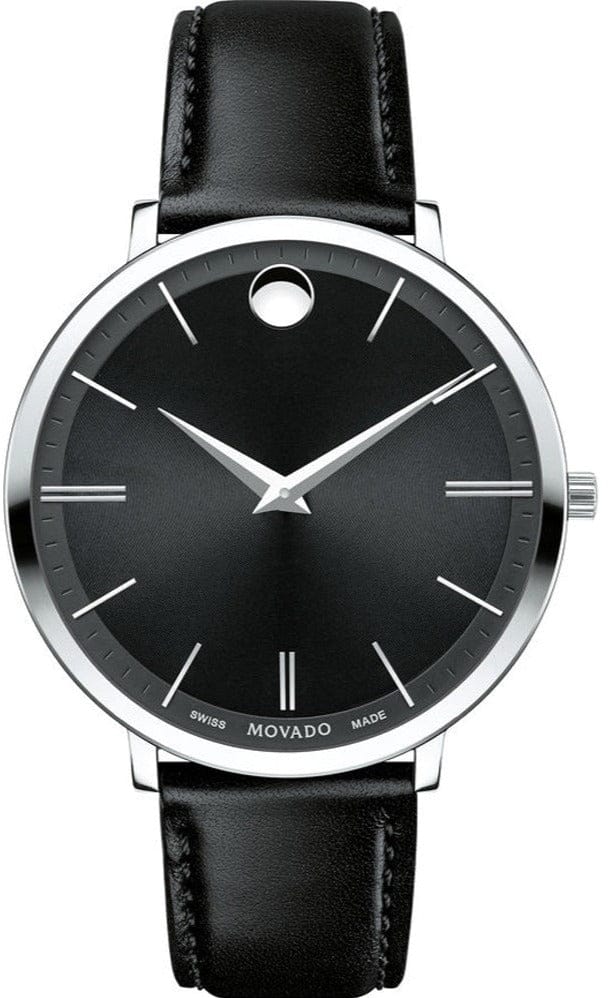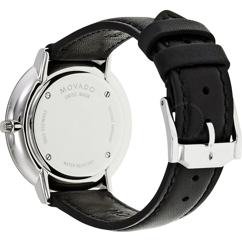 Movado Ultra Slim Black Dial Black Leather Strap Watch For Women - 0607090