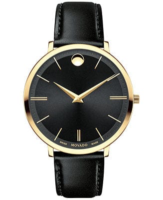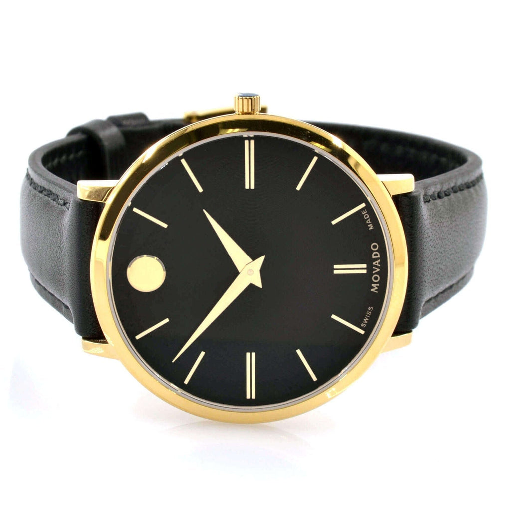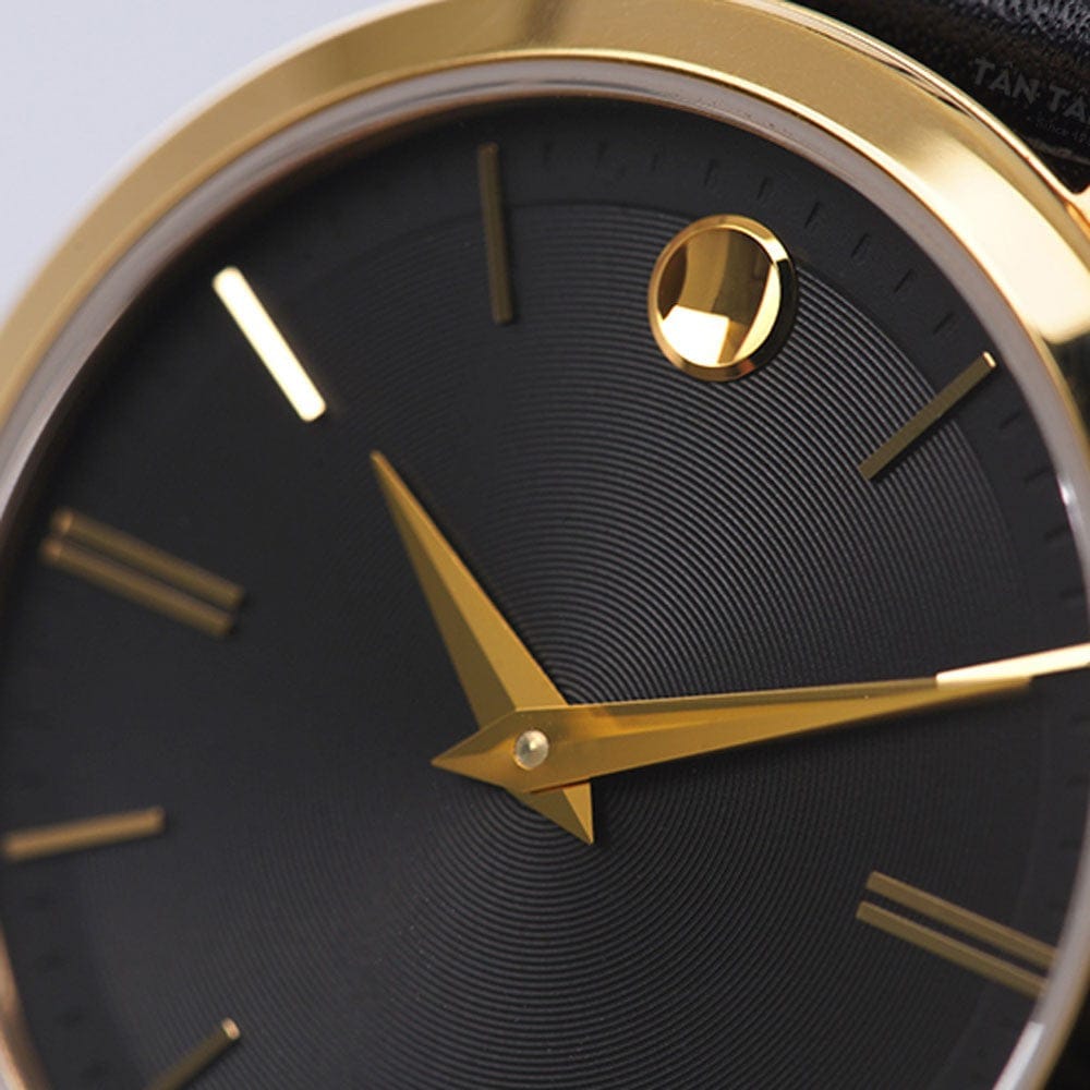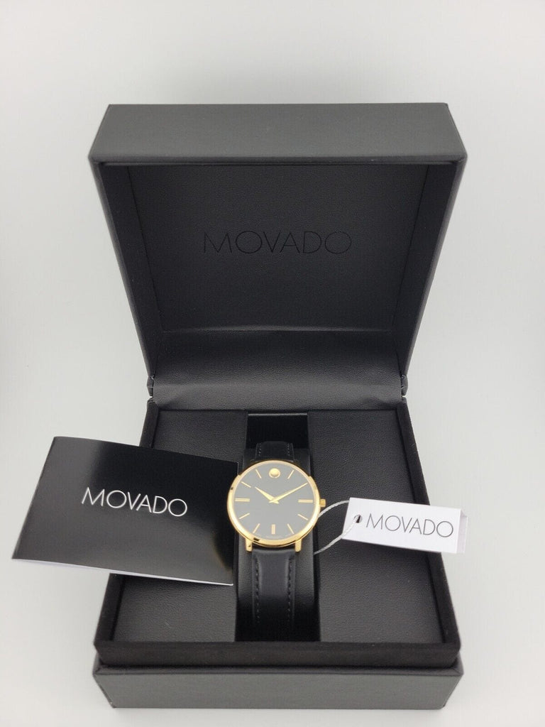 Movado Ultra Slim Black Dial Black Leather Strap Watch For Women - 0607091