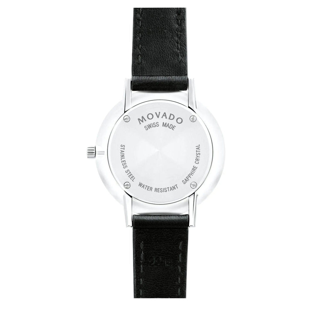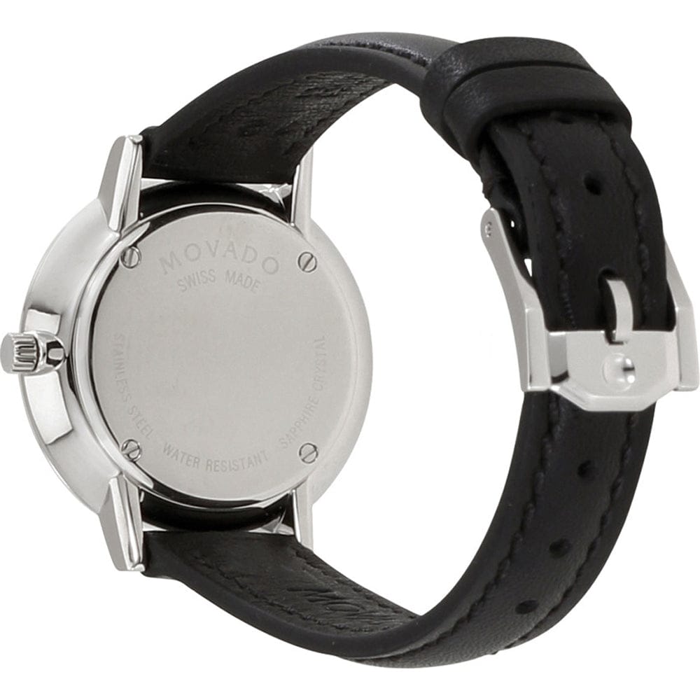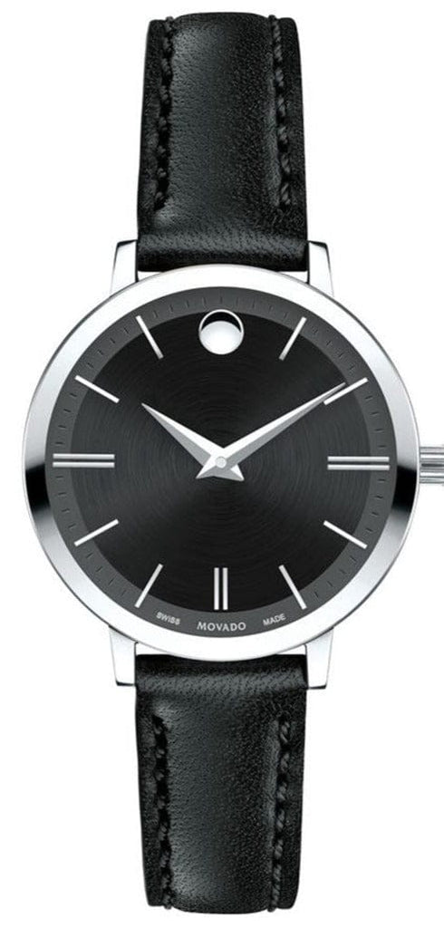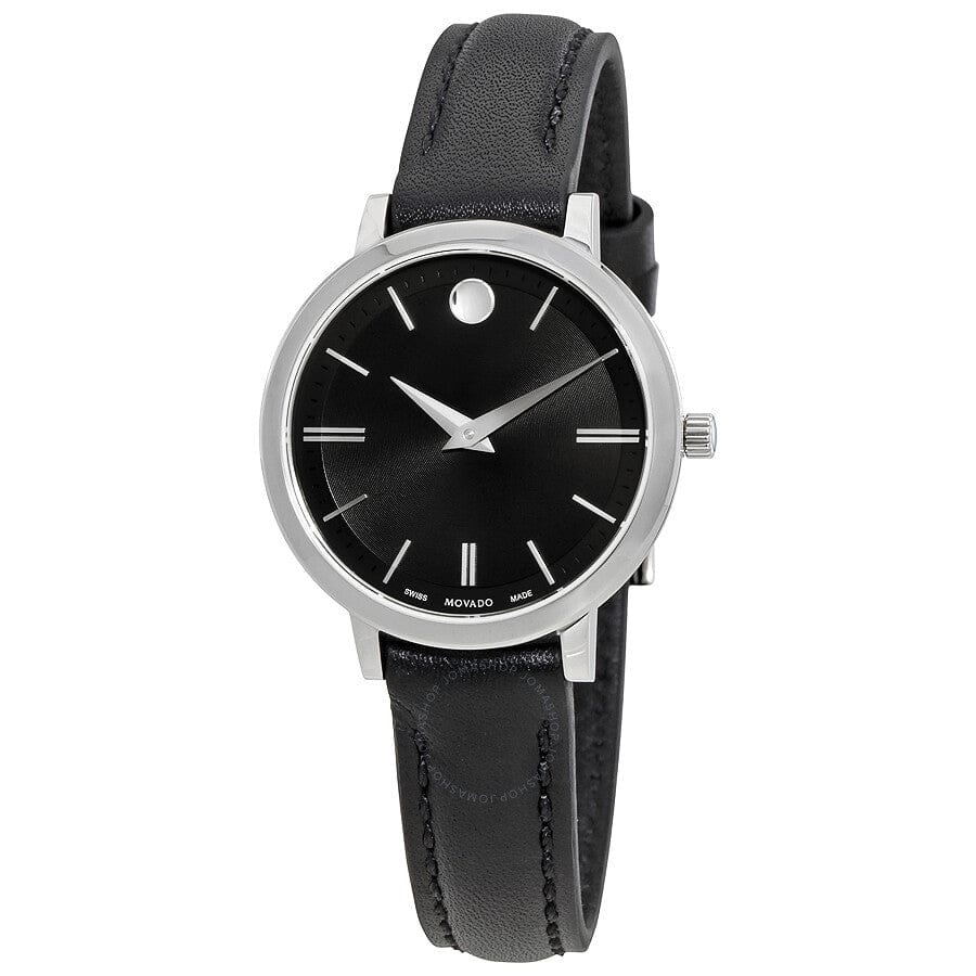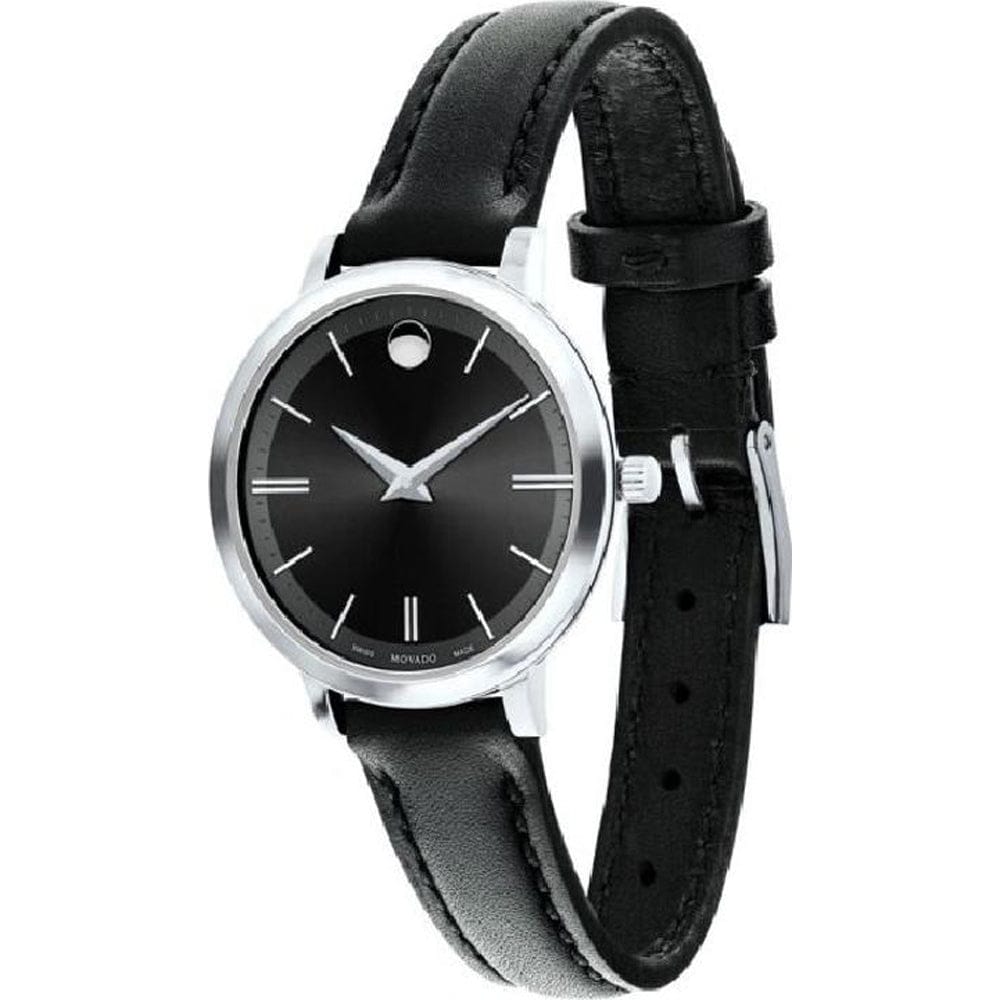 Movado Ultra Slim Black Dial Black Leather Strap Watch For Women - 0607094