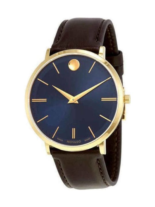 Movado Ultra Slim Blue Dial Brown Leather Strap Watch For Men - 0607088