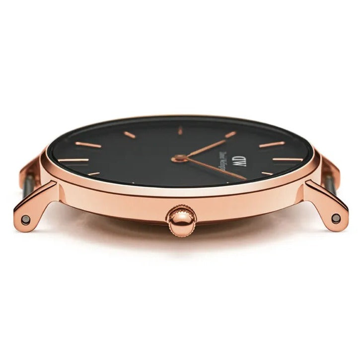 Daniel Wellington Classic Petite Dover Black Dial White NATO Strap Watch For Women - DW00100312