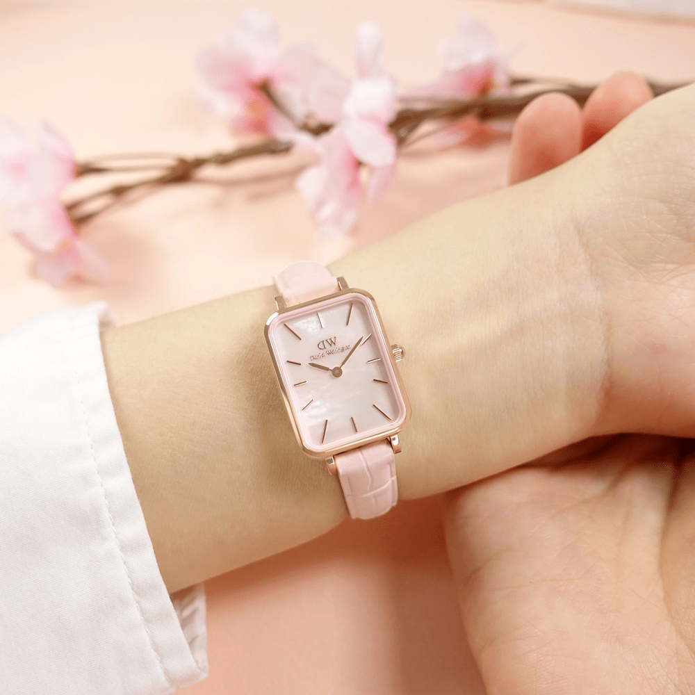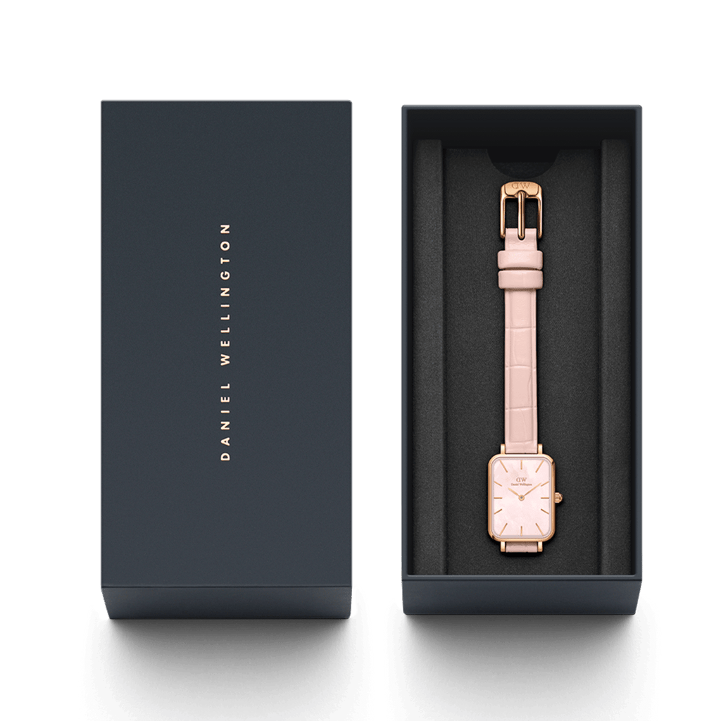 Experience the timeless elegance and sophistication with the Daniel Wellington Quadro Pressed Mother of Pearl Pink Dial Pink Leather Strap Watch. This watch features a luxurious pressed mother of pearl pink dial and a stylish pink leather strap, perfect for the modern woman with impeccable taste. Make a statement with every tick of the clock.
