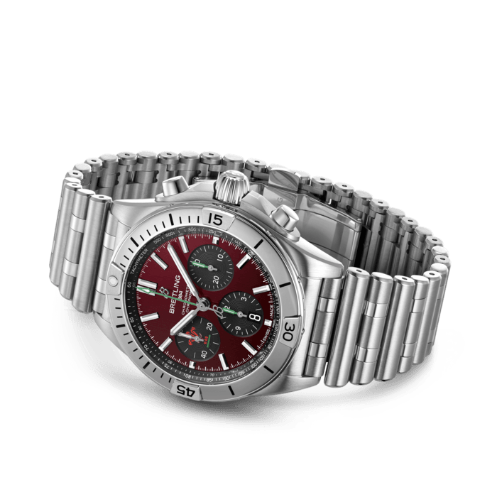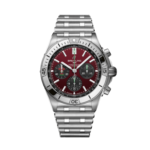Breitling Chronomat B01 42 Six Nations Wales Red Dial Silver Steel Strap Watch for Men - AB0134A61K1A1
