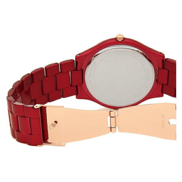 Michael Kors Slim Runway MK3895 Quartz Unisex Watch Emphasizing upon magnificence, the subtle luxury of this Michael Kors™ Slim Runway timepiece owes to its decently sized, low-profile case and bracelet, presented in an irrepressible red-tone.
