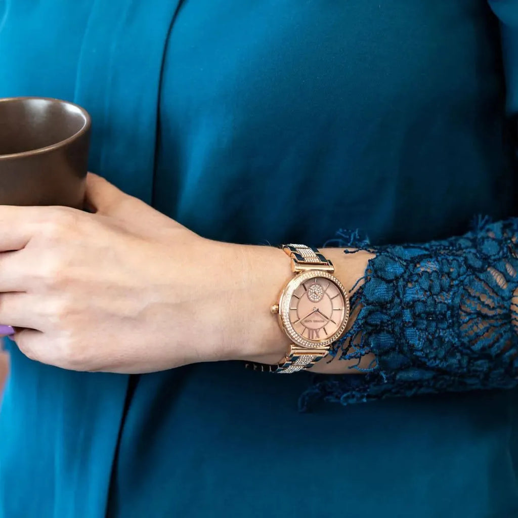 Michael Kors Abbey Three-Hand Analog Crystals Rose Gold Dial Rose Gold Steel Strap Watch for Women - MK4617