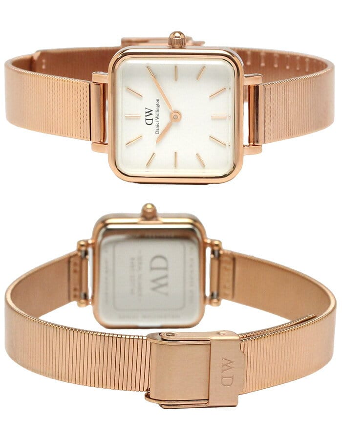 Daniel Wellington Quadro Studio White Dial Rose Gold Mesh Strap Watch For Women - DW00100517