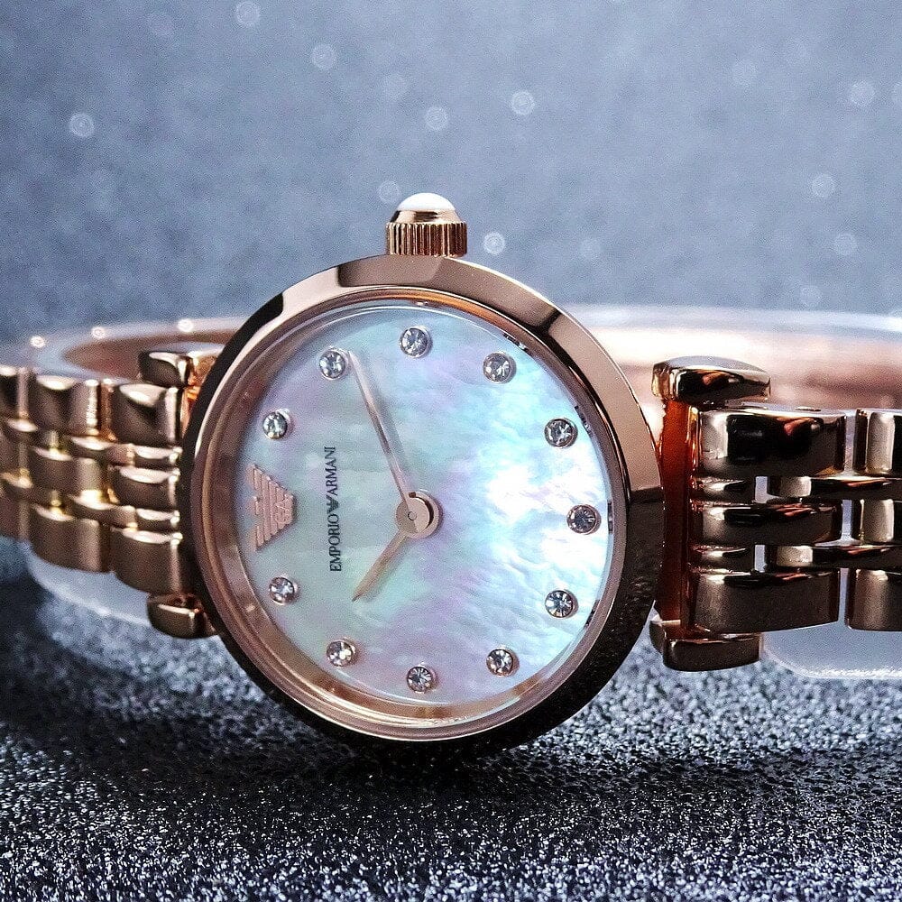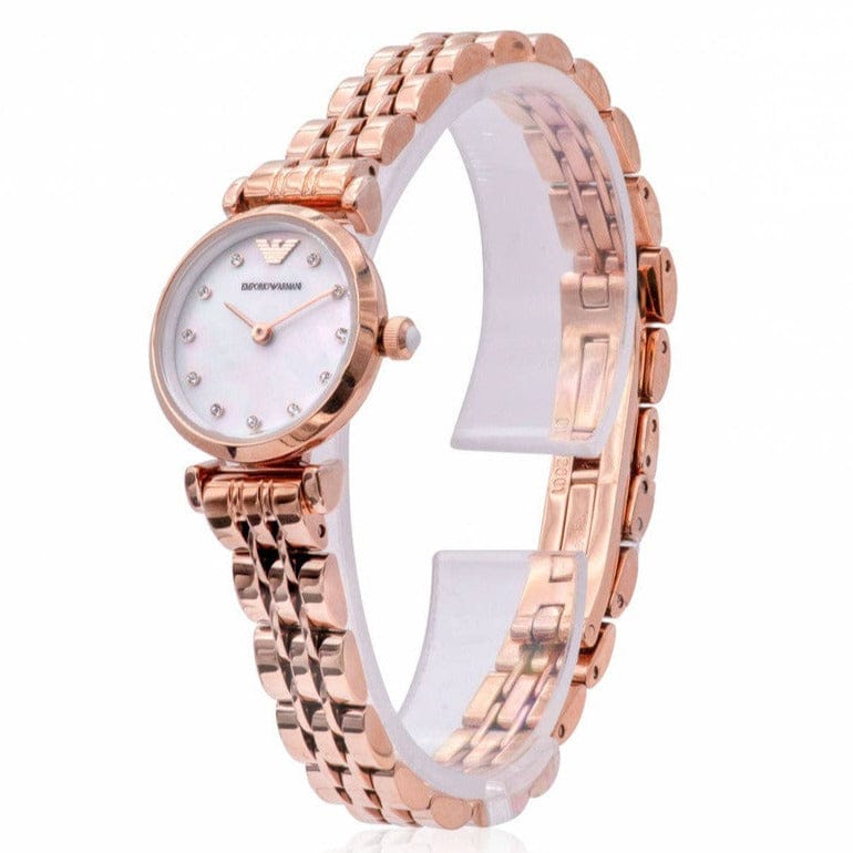 Emporio Armani Gianni T-Bar Mother of Pearl Dial Rose Gold Steel Strap Watch For Women - AR11203