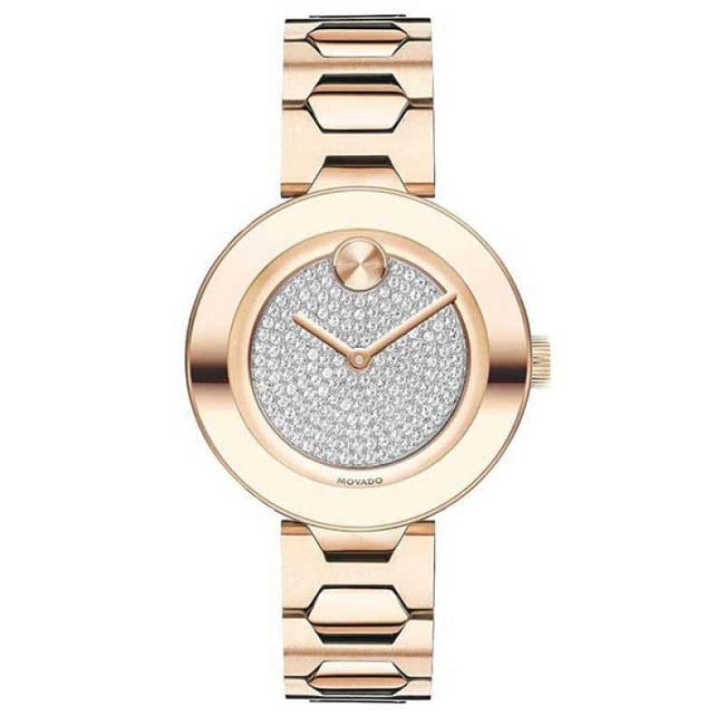 Movado Bold Crystal Pave Rose Gold Dial Rose Gold Steel Strap Watch For Women - 3600493