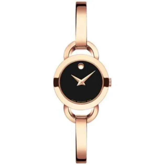 Movado Rondiro 22mm Black Dial Rose Gold Steel Strap Watch For Women - 0607065