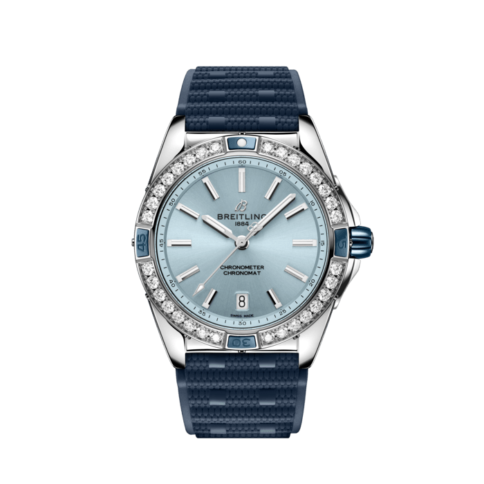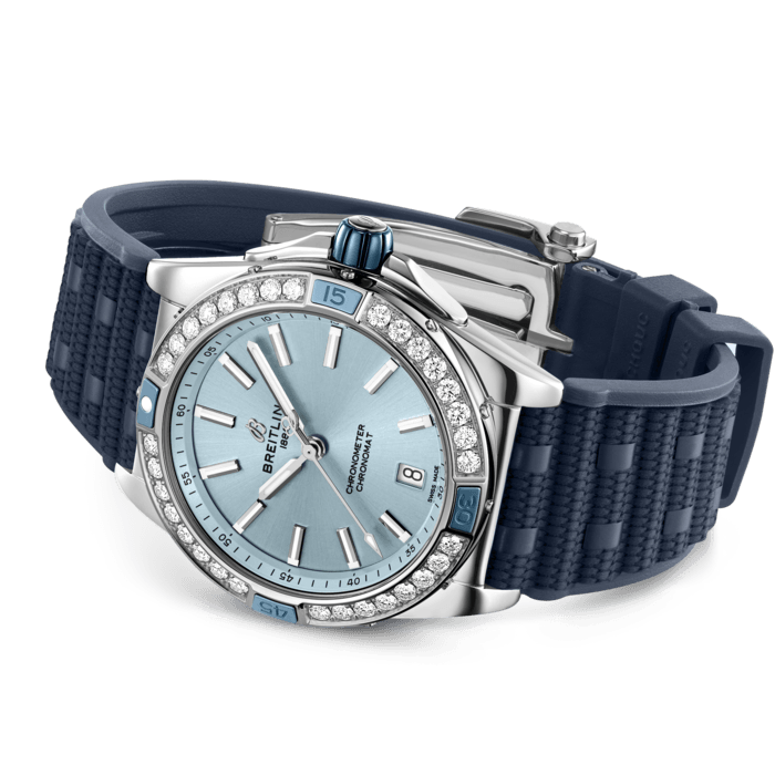 Breitling Super Chronomat Automatic 38 Diamonds Blue Dial Blue Rubber Strap Watch for Women - A17356531C1S1
