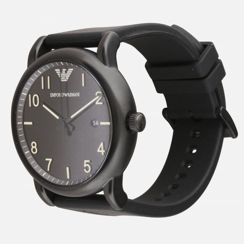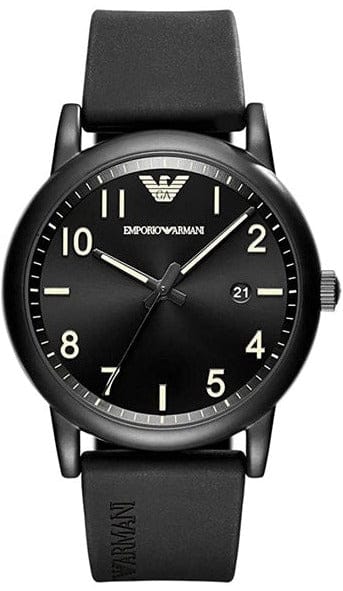 Emporio Armani AR-11071 is a simple yet stylish men's watch with a black rubber belt and black dial enclosed in grey tone casing. This watch comes in its original box and 2 year warranty which is an added advantage.