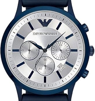 Emporio Armani Ar11026 Men's watch with quartz movement and 44 mm diameter stainless steel case, silver dial, mineral glass and blue rubber band.