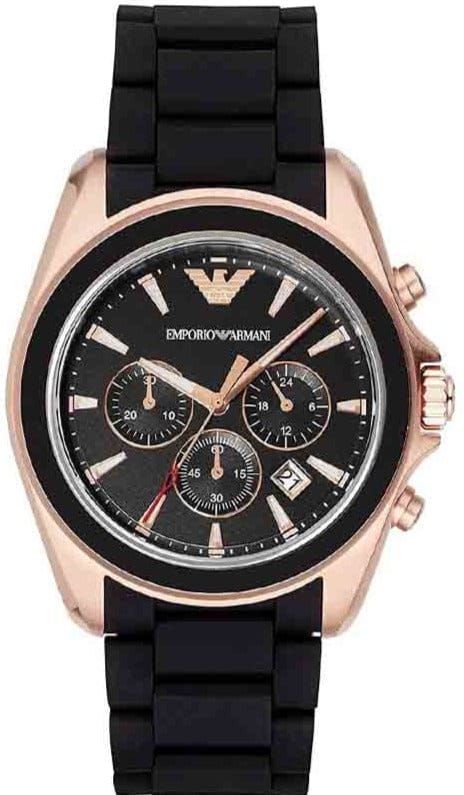 - Mens Rose Gold Dials Black Rubber Strap Emporio Armani Watch AR6066