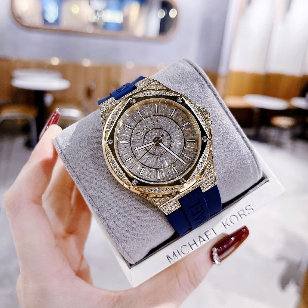 Embrace effortless elegance with a touch of nautical charm in the Michael Kors Lennox MK7333. This 43mm timepiece features a stunning gold stainless steel case contrasting beautifully with a deep blue silicone strap, creating a stylish and comfortable everyday companion.
